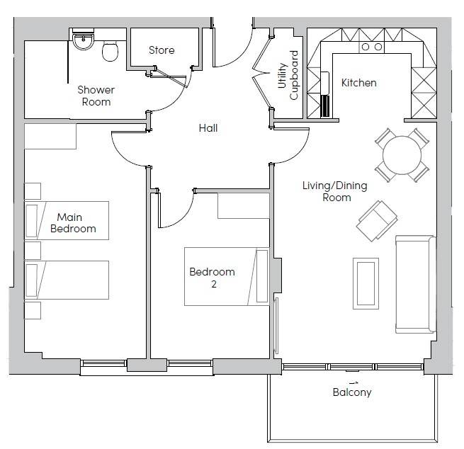 This idyllic two bedroom apartment has a south-east facing balcony. There is an open plan kitchen/living/dining room, spacious main bedroom and second double bedroom.
